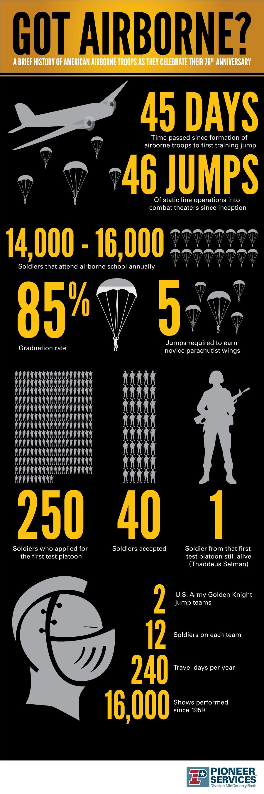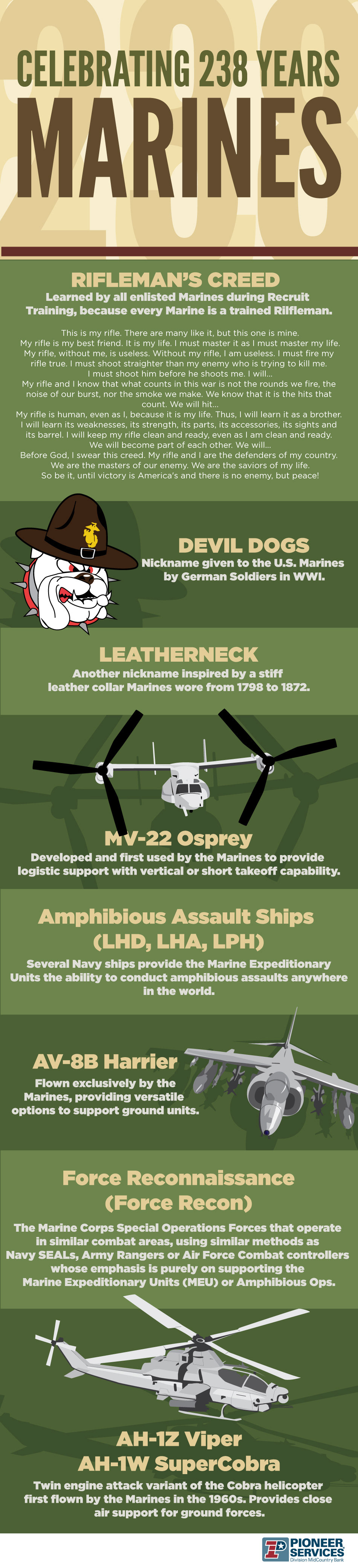 Various Military themed infographics for Pioneer Services